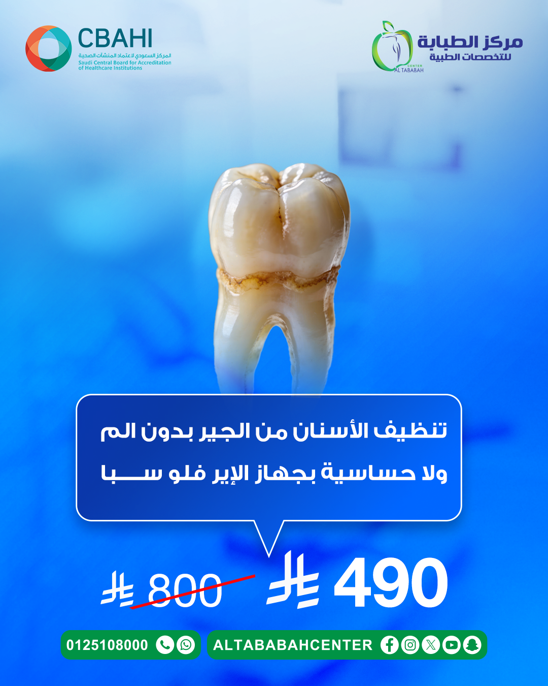 تنظيف الأسنان من الجير بدون الم ولا حساسية بجهاز الإير فلو سبا فقط بـ 490 ريال قبل 800 ريال